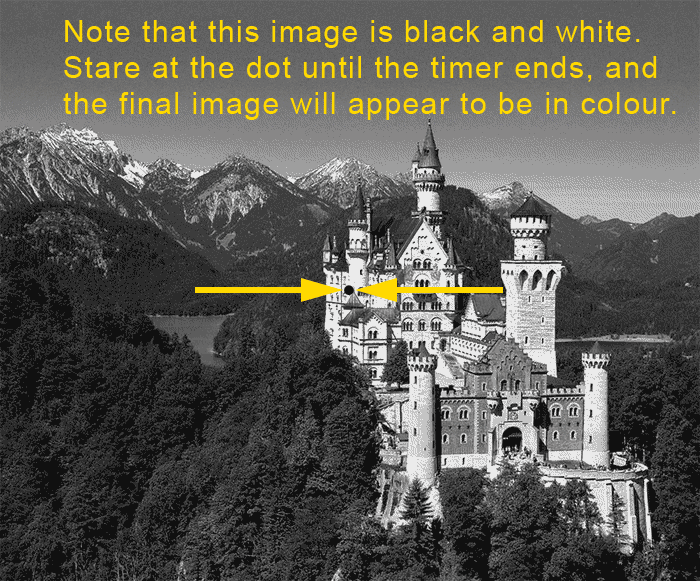 You've probably seen GIFs like this before. Just stare at the dot as the number counts down and the final image will look coloured despite actually being black and white.